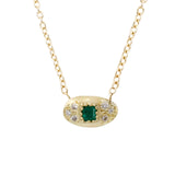 Our Samara Necklace is a freeform golden oval encrusted with gems--delicate enough to be low key, but with a sparkle that draws the eye.